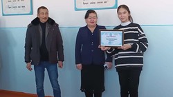 Таласта тарых сабагы боюнча олимпиадада 1-орунду ээлеген Арина Мыктыбековага 5 миң сом тапшырылды