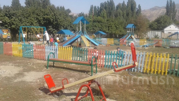 В детсаду села Миң Булак Таласской области построили игровую площадку и современный туалет (фото)